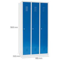 Manutan Expert DURO PROFI hegesztett öltözőszekrény, 3 részes, szürke/kék, hengerzár