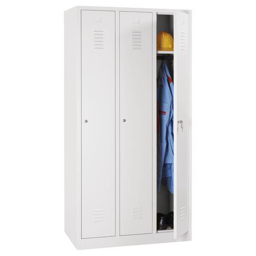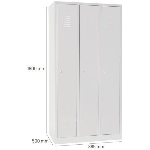 Manutan Expert DURO PROFI hegesztett öltözőszekrény, 3 részes, szürke/szürke, hengerzár