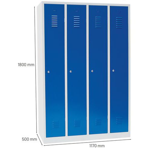 Manutan Expert DURO PROFI hegesztett öltözőszekrény, 4 részes, szürke/kék, hengerzár