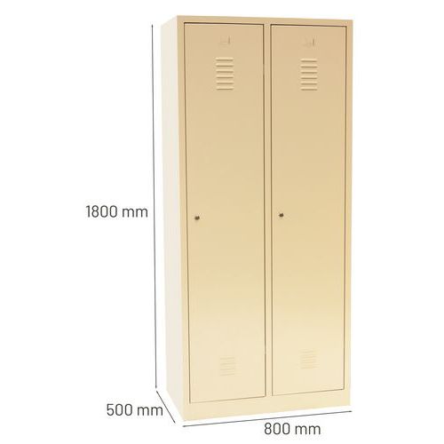 A prémium minőségű, két önállóan zárható részből álló hegesztett öltözőszekrények minden része függőleges válaszfallal elválasztott, így külön tárolhatja a tiszta és a szennyes ruhákat.