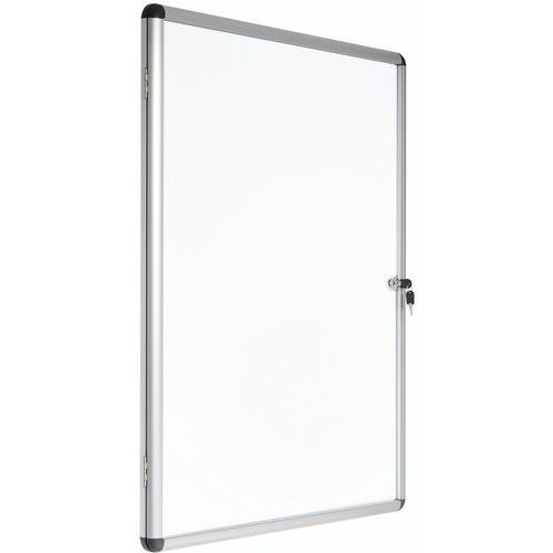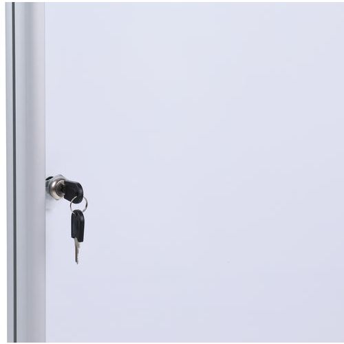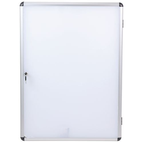 Ovális alumínium keretű mágneses vitrinek beltérbe. Akril ajtó és lakkozott mágneses hátfal. A vitrinek zárhatók, és oldalsó nyitással rendelkeznek. A hátfal szárazon törölhető felületű.