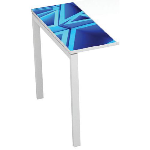 Egyenes íróasztal irodai használatra. A színes, vidám dizájn minden szobabelsőt feldob. Fém szerkezet és fém teleszkópos tartóváz garantálja az asztal nagy stabilitását. 2 mm vastag PVC élzárók. Fehér epoxi festékkel felületkezelve.