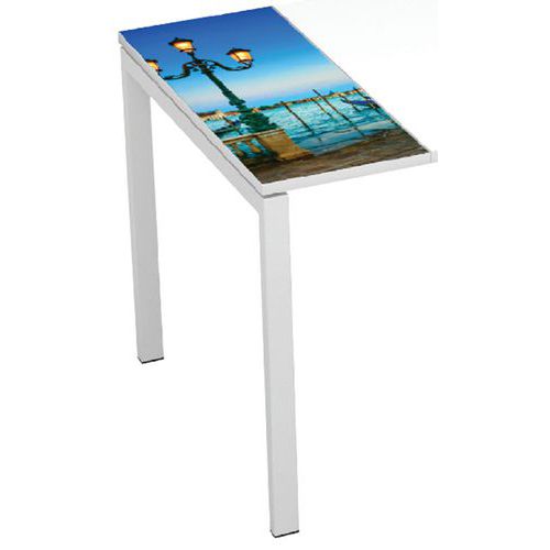 Egyenes íróasztal irodai használatra. A színes, vidám dizájn minden szobabelsőt feldob. Fém szerkezet és fém teleszkópos tartóváz garantálja az asztal nagy stabilitását. 2 mm vastag PVC élzárók. Fehér epoxi festékkel felületkezelve.