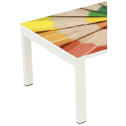 Téglalapalakú konferenciaasztal színes kivitelben irodákba, előterekbe stb. Az 50 x 30 mm-es profilokból készült lakkozott fémszerkezet nagy stabilitást biztosít. Az asztallap 2 mm vastag élzárókkal rendelkezik. Az asztallábak műanyag burkolata védi a padlót a karcolásoktól.