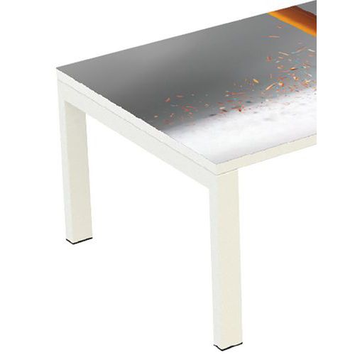 Téglalapalakú konferenciaasztal színes kivitelben irodákba, előterekbe stb. Az 50 x 30 mm-es profilokból készült lakkozott fémszerkezet nagy stabilitást biztosít. Az asztallap 2 mm vastag élzárókkal rendelkezik. Az asztallábak műanyag burkolata védi a padlót a karcolásoktól.