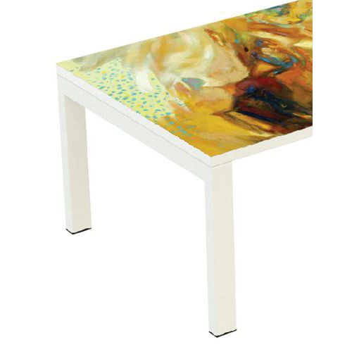 Téglalapalakú konferenciaasztal színes kivitelben irodákba, előterekbe stb. Az 50 x 30 mm-es profilokból készült lakkozott fémszerkezet nagy stabilitást biztosít. Az asztallap 2 mm vastag élzárókkal rendelkezik. Az asztallábak műanyag burkolata védi a padlót a karcolásoktól.