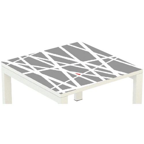 Négyzetalakú konferenciaasztal színes kivitelben irodákba, előterekbe stb. Az 50 x 30 mm-es profilokból készült lakkozott fémszerkezet nagy stabilitást biztosít. Az asztallap 2 mm vastag élzárókkal rendelkezik. Az asztallábak műanyag burkolata védi a padlót a karcolásoktól. Gyártói garancia az ügyfélnek : 10 év