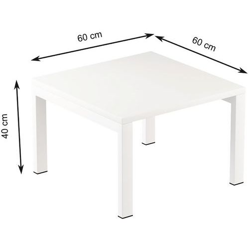 Négyzetalakú konferenciaasztal színes kivitelben irodákba, előterekbe stb. Az 50 x 30 mm-es profilokból készült lakkozott fémszerkezet nagy stabilitást biztosít. Az asztallap 2 mm vastag élzárókkal rendelkezik. Az asztallábak műanyag burkolata védi a padlót a karcolásoktól.