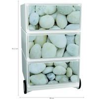 Mozgatható tárolók három fiókkal irodaszerek tárolására. A fiókok elülső felülete ABS műanyagból készül. A mozgathatóságot 4 kerék biztosítja, melyek közül kettő önbeálló. A fiókok belső hasznos mérete: 32,5 x 13,3 x 40,5 cm. Gyártói garancia az ügyfélnek : 10 év