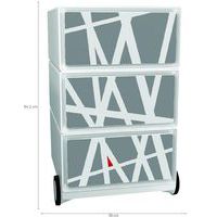 Mozgatható tárolók három fiókkal irodaszerek tárolására. A fiókok elülső felülete ABS műanyagból készül. A mozgathatóságot 4 kerék biztosítja, melyek közül kettő önbeálló. A fiókok belső hasznos mérete: 32,5 x 13,3 x 40,5 cm. Gyártói garancia az ügyfélnek : 10 év