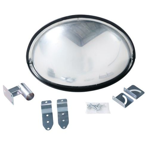 Parabolikus negyedkör tükör a biztonság és átláthatóság növelésére „T” alakú kereszteződésekben raktárakban, ipari termekben, parkolókban stb. A bolti tolvajok ellenőrzésére és elriasztására. Rögzítés tartóval.