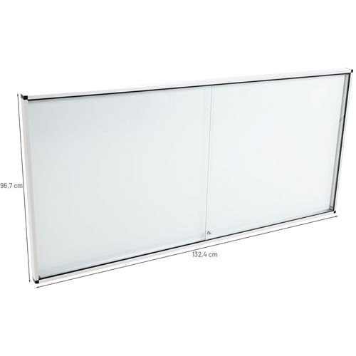 Ovális alumínium keretű mágneses vitrinek beltérbe. A vitrin egyik felén elhelyezett akril tolóajtó erősített üvegből készül. A vitrinek zárhatók, és oldalsó nyitással rendelkeznek. A hátfal szárazon törölhető felületű. Gyártói garancia az ügyfélnek : 10 év