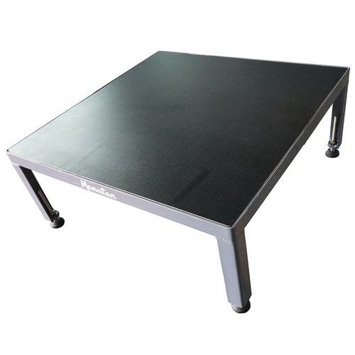 Állítható ipari fellépő a magasban végzett kényelmes munkához. Acélszerkezete nagy stabilitást biztosít. A magasságállítás a menetes lábakkal lehetséges. Magasságreteszelés biztonsági anyákkal. Fából készült lap csúszásmentes felülettel. Max. terhelés (kg) : 150 kg Gyártói garancia az ügyfélnek : 10 év
