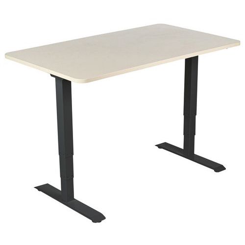 Manutan Expert ergonomikus, állítható magasságú íróasztalok fekete alappal. Két különböző fedőlap-kialakításban és két szélességben kapható. Két motor a lábakba integrálva. Ideális a munkához, miközben megvédi Önt a hátproblémáktól. Teherbírása 100 kg-ig. . Szétszerelve szállítjuk. Könnyű összeszerelés.