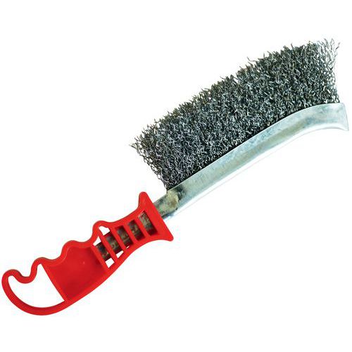 Fém kefék műanyag, formázott nyéllel. Háromféle dróthuzalból készült sörtével kaphatóak. Acél drótkefe fém alkatrészek rozsdátlanítására, sárgaréz drótkefe puha és törékeny fémekhez, rozsdamentes acél drótkefe durva felületekre.