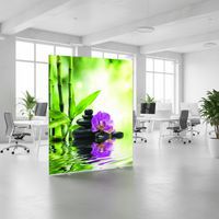 Térelválasztó vászon paraván különböző színű és mintájú kivitelekben. A vászon tűzállósága M1 kategóriába tartozik, 30°-on mosható. Két, fehérre lakkozott, stabil acéllábbal. A paraván gyorsan és egyszerűen összeszerelhető.