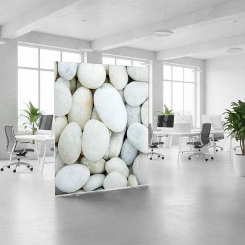 Térelválasztó vászon paraván különböző színű és mintájú kivitelekben. A vászon tűzállósága M1 kategóriába tartozik, 30°-on mosható. Két, fehérre lakkozott, stabil acéllábbal. A paraván gyorsan és egyszerűen összeszerelhető.