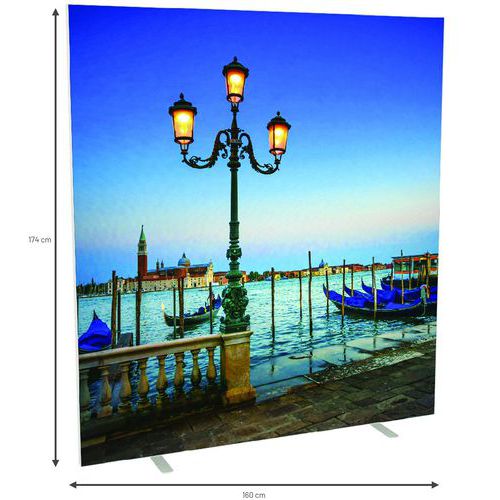 Térelválasztó vászon paraván különböző színű és mintájú kivitelekben. A vászon tűzállósága M1 kategóriába tartozik, 30°-on mosható. Két, fehérre lakkozott, stabil acéllábbal. A paraván gyorsan és egyszerűen összeszerelhető. Gyártói garancia az ügyfélnek : 10 év