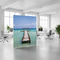 Térelválasztó vászon paraván különböző színű és mintájú kivitelekben. A vászon tűzállósága M1 kategóriába tartozik, 30°-on mosható. Két, fehérre lakkozott, stabil acéllábbal. A paraván gyorsan és egyszerűen összeszerelhető.