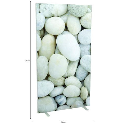 Irodai térelválasztó vászon paraván különböző színű és mintájú kivitelekben. A vászon tűzállósága M1 kategóriába tartozik, 30°-on mosható. Két, fehérre lakkozott, stabil acéllábbal. A paraván gyorsan és egyszerűen összeszerelhető. Gyártói garancia az ügyfélnek : 10 év