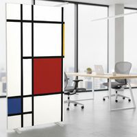 Irodai térelválasztó vászon paraván különböző színű és mintájú kivitelekben. A vászon tűzállósága M1 kategóriába tartozik, 30°-on mosható. Két, fehérre lakkozott, stabil acéllábbal. A paraván gyorsan és egyszerűen összeszerelhető. Gyártói garancia az ügyfélnek : 10 év