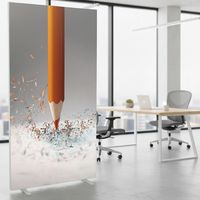 Irodai térelválasztó vászon paraván különböző színű és mintájú kivitelekben. A vászon tűzállósága M1 kategóriába tartozik, 30°-on mosható. Két, fehérre lakkozott, stabil acéllábbal. A paraván gyorsan és egyszerűen összeszerelhető.