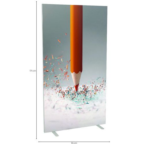 Irodai térelválasztó vászon paraván különböző színű és mintájú kivitelekben. A vászon tűzállósága M1 kategóriába tartozik, 30°-on mosható. Két, fehérre lakkozott, stabil acéllábbal. A paraván gyorsan és egyszerűen összeszerelhető. Gyártói garancia az ügyfélnek : 10 év