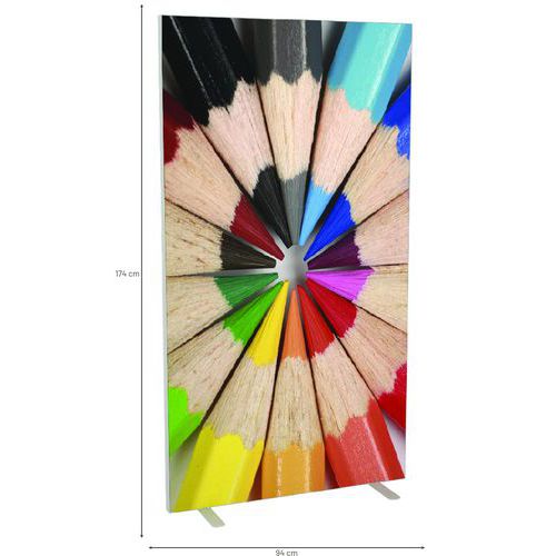 Irodai térelválasztó vászon paraván különböző színű és mintájú kivitelekben. A vászon tűzállósága M1 kategóriába tartozik, 30°-on mosható. Két, fehérre lakkozott, stabil acéllábbal. A paraván gyorsan és egyszerűen összeszerelhető. Gyártói garancia az ügyfélnek : 10 év