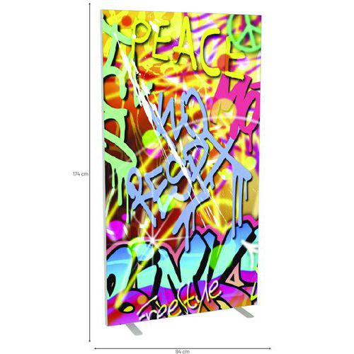 Irodai térelválasztó vászon paraván különböző színű és mintájú kivitelekben. A vászon tűzállósága M1 kategóriába tartozik, 30°-on mosható. Két, fehérre lakkozott, stabil acéllábbal. A paraván gyorsan és egyszerűen összeszerelhető. Gyártói garancia az ügyfélnek : 10 év