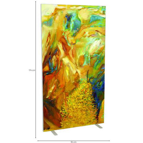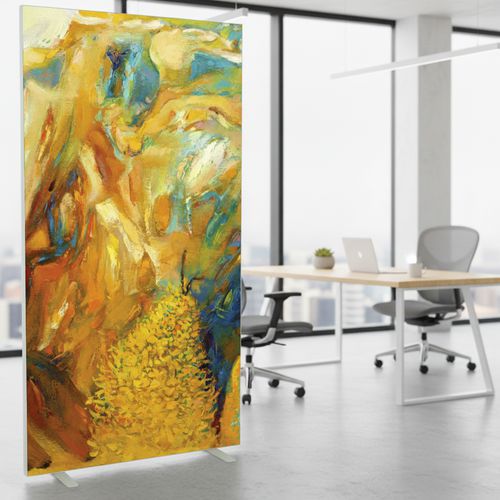 Irodai térelválasztó vászon paraván különböző színű és mintájú kivitelekben. A vászon tűzállósága M1 kategóriába tartozik, 30°-on mosható. Két, fehérre lakkozott, stabil acéllábbal. A paraván gyorsan és egyszerűen összeszerelhető. Gyártói garancia az ügyfélnek : 10 év