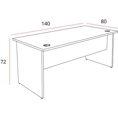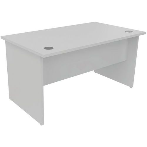 Manutan Expert íróasztalok 25 mm-es szürke melamin panellappal. Tükröződésmentes, karcolásgátló kezelés antibakteriális tulajdonságokkal. Az asztallapon két 80 mm átmérőjű lyuk található a kábelvezetéshez. Reteszelőcsavarokkal ellátott panelalap. 2 mm-es anti- -ütközik az ABS élekkel. Szerelés : Szereléshez Gyártói garancia az ügyfélnek : 10 év