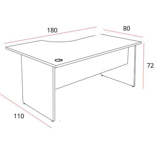 számítógéppel való munkavégzésre tervezett kompakt íróasztalok jobb- és balkezes változatban is kaphatók. 25 mm vastag melamin panelekből készült felsőrészek. Tükröződésmentes, karcolásgátló kezelés antibakteriális tulajdonságokkal. Az asztal 80 mm átmérőjű lyuk a vezetőkábelekhez. Reteszelőcsavarokkal felszerelt panelalap. 2 mm-es ütésálló ABS élek.