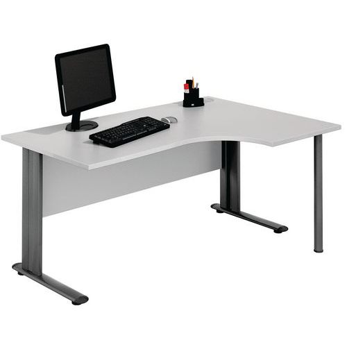 Manutan Expert íróasztalok 25 mm vastag melamin panellappal és fém talppal. Két szélesség közül választhat. Az asztal jobb vagy bal oldali kialakítása. Tükröződésmentes, karcolásgátló kezelés antibakteriális tulajdonságokkal. Az asztal tetején 80 mm átmérőjű nyílás található a kábelvezetéshez. A fém lábak eltávolítható burkolatokkal vannak ellátva a kábelvezetéshez. 2 mm-es ütésálló ABS élek.