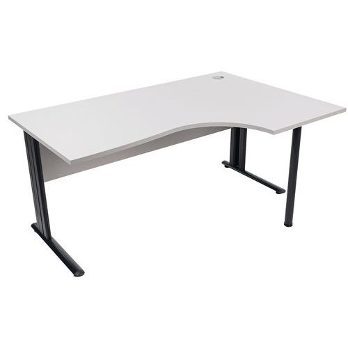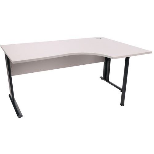 Manutan Expert íróasztalok 25 mm vastag melamin panellappal és fém talppal. Két szélesség közül választhat. Az asztal jobb vagy bal oldali kialakítása. Tükröződésmentes, karcolásgátló kezelés antibakteriális tulajdonságokkal. Az asztal tetején 80 mm átmérőjű nyílás található a kábelvezetéshez. A fém lábak eltávolítható burkolatokkal vannak ellátva a kábelvezetéshez. 2 mm-es ütésálló ABS élek.