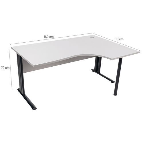 Manutan Expert íróasztalok 25 mm vastag melamin panellappal és fém talppal. Két szélesség közül választhat. Az asztal jobb vagy bal oldali kialakítása. Tükröződésmentes, karcolásgátló kezelés antibakteriális tulajdonságokkal. Az asztal tetején 80 mm átmérőjű nyílás található a kábelvezetéshez. A fém lábak eltávolítható burkolatokkal vannak ellátva a kábelvezetéshez. 2 mm-es ütésálló ABS élek. Gyártói garancia az ügyfélnek : 10 év Szerelés : Szereléshez