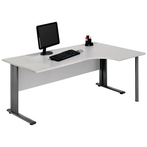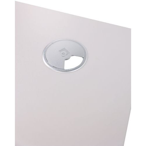 Manutan Expert íróasztalok 25 mm vastag melamin panellappal és fém talppal. Két szélesség közül választhat. Az asztal jobb vagy bal oldali kialakítása. Tükröződésmentes, karcolásgátló kezelés antibakteriális tulajdonságokkal. Az asztal tetején 80 mm átmérőjű nyílás található a kábelvezetéshez. A fém lábak eltávolítható burkolatokkal vannak ellátva a kábelvezetéshez. 2 mm-es ütésálló ABS élek.