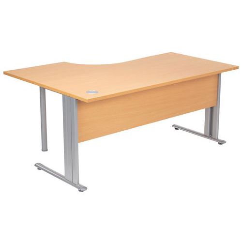 Manutan Expert íróasztalok 25 mm vastag melamin panellappal és fém talppal. Két szélesség közül választhat. Az asztal jobb vagy bal oldali kialakítása. Tükröződésmentes, karcolásgátló kezelés antibakteriális tulajdonságokkal. Az asztal tetején 80 mm átmérőjű nyílás található a kábelvezetéshez. A fém lábak eltávolítható burkolatokkal vannak ellátva a kábelvezetéshez. 2 mm-es ütésálló ABS élek.