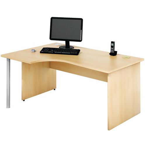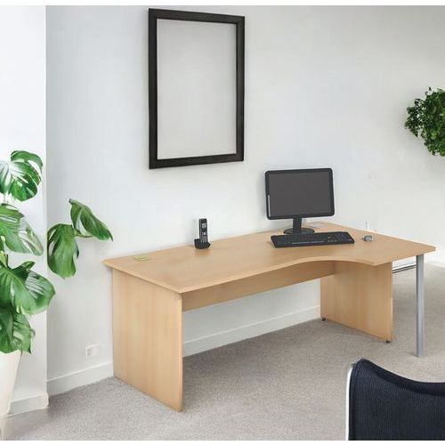 Íróasztalok 25 mm vastag melamin panellappal. Jobb- vagy balos kivitelben is kapható. A panel alapjai zárócsavarokkal vannak felszerelve. Tükröződés- és karcolásgátló kezelés, antibakteriális tulajdonságokkal. Az asztallap része egy 80 mm-es kivágás a kábelek elvezetéséhez. 2 mm-es ütésálló ABS élek.