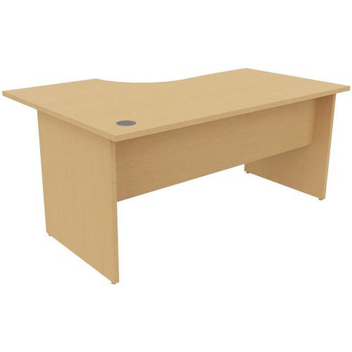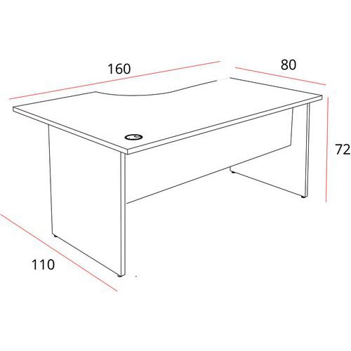 Íróasztalok 25 mm vastag melamin panellappal. Jobb- vagy balos kivitelben is kapható. A panel alapjai zárócsavarokkal vannak felszerelve. Tükröződés- és karcolásgátló kezelés, antibakteriális tulajdonságokkal. Az asztallap része egy 80 mm-es kivágás a kábelek elvezetéséhez. 2 mm-es ütésálló ABS élek.