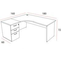 A konténerrel ellátott irodai asztalok jobbos és balos változatban is kaphatók. Két különböző szélesség közül választhat. Nagyon kompakt – ideális kis helyekre. A rögzítőcsavarokkal ellátott panellábak az asztal nagyobb stabilitását teszik lehetővé. Melaminból készült lapok 25 mm vastag panelek . Tükröződésmentes, karcolásgátló kezelés antibakteriális tulajdonságokkal. 80 mm átmérőjű lyuk a munkalapon a kábelek elvezetéséhez. Tartály 3 fiók - 1 az iratok felakasztására. Központi zár 2 kulccsal.