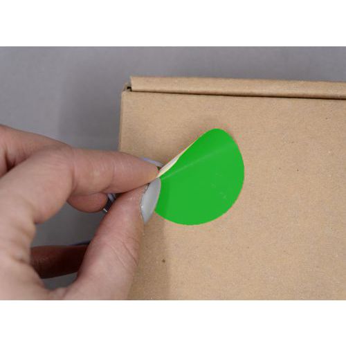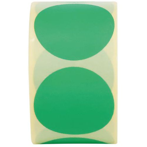 Kézi címkézéshez alkalmas kör alakú jelölőcímkék. Több színváltozatban kapható. Hőnyomtatásra alkalmas. Tekercsenként 500 db.
