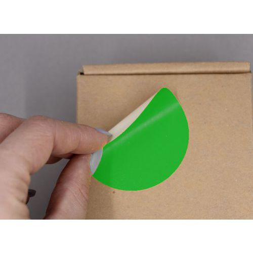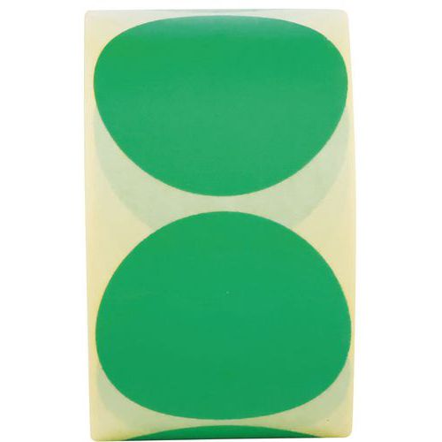 Kézi címkézéshez alkalmas kör alakú jelölőcímkék. Több színváltozatban kapható. Hőnyomtatásra alkalmas. Tekercsenként 500 db.