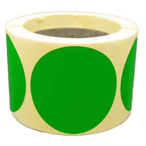 Kézi címkézéshez alkalmas kör alakú jelölőcímkék. Több színváltozatban kapható. Hőnyomtatásra alkalmas. Tekercsenként 500 db.