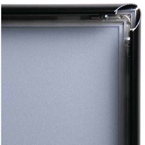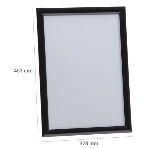 Fekete fém kipattintható keret szórólapok, tájékoztató iratok és dokumentumok kihelyezésére. 25 mm-es profilból készült keret, csapott éllel. Falra szerelhető.
