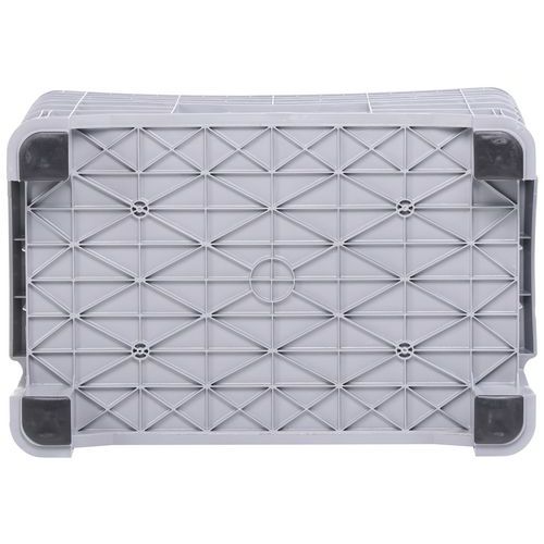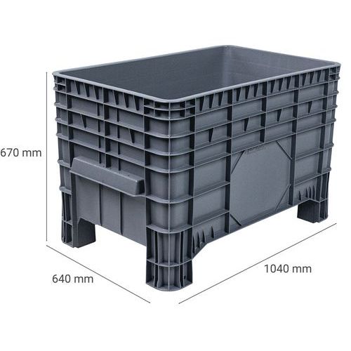 A műanyag rendkívül ellenálló a vegyszerekkel és az ütésekkel szemben. Szilárd oldalak és alja a tökéletes folyadékvisszatartásért. Egymásba rakható modell állvánnyal vagy fedéllel is. Rendkívül robusztus tartály négy erős lábbal.