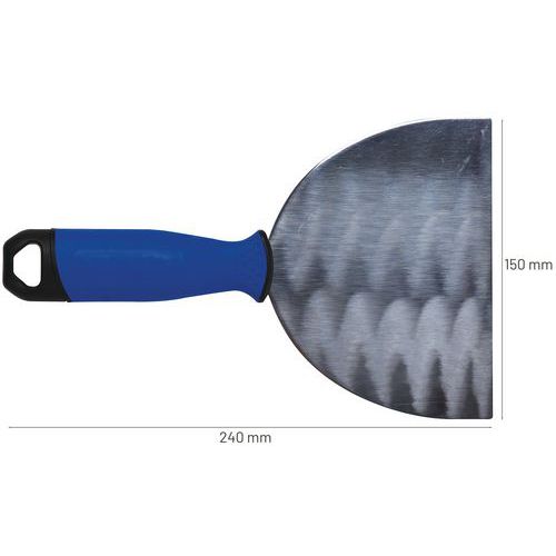 Rozsdamentes acél spakli kétkomponensű nyéllel. Kiváló minőségű, polírozott penge a tökéletes végeredményért. Hossza: 240 mm.
