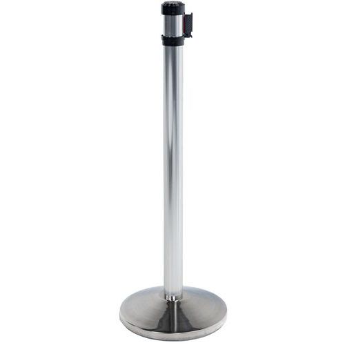 Torlaszoló oszlopok önvisszahúzó szalaggal, ideálisak a belépés megakadályozására, személyek ideiglenes navigálására stb. Gumibetéttel felszereltek a nagyobb stabilitás érdekében. Az oszlop feje lehetővé teszi további 3 szalag lezárását. A szalag falhoz rögzítéséhez meg kell vásárolni az 150199 fali rögzítőt.