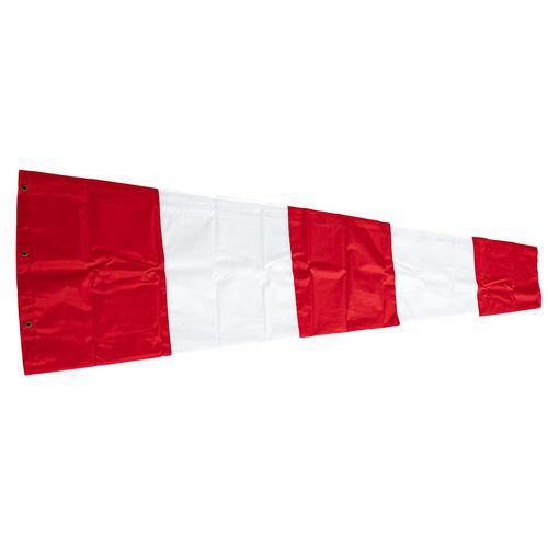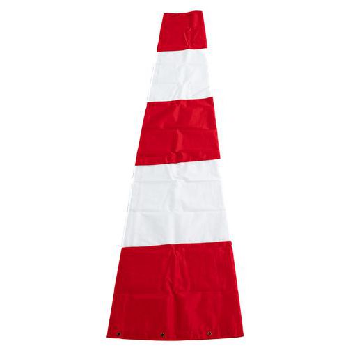 Fújt állapotban a váltakozó narancssárga és fehér csíkok 5 csomós becsült szélsebességnek felelnek meg (ami körülbelül 9 km/h).