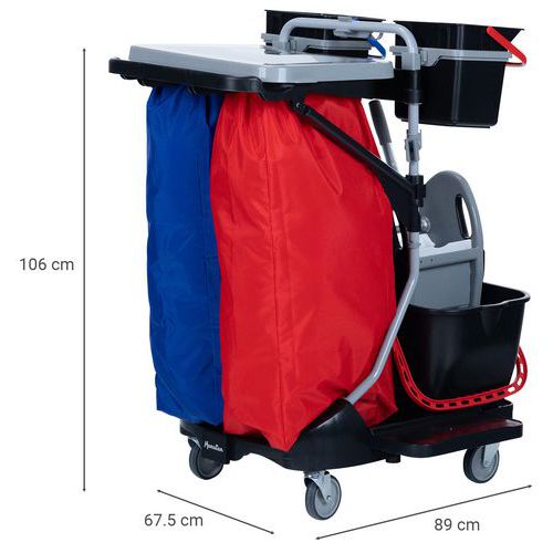 Manutan Expert takarító kocsi kicsavaróval és zacskótartóval, 2 x 15 l, 2 x 6 l