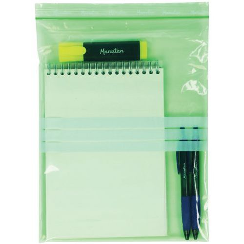 Manutan Expert újrahasznosított cipzáras táskák, 50 mikrofon, zöld, 100